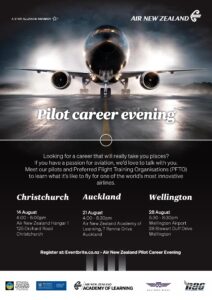 At each event, there will be a presentation by Air New Zealand (1 hour duration), and a chance to talk to Air New Zealand Pilots and flight training organisations about pilot careers. There will also be an opportunity to learn more about engineering careers at Air New Zealand if you have students interested in engineering.