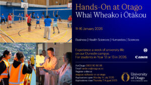 2026 Hands-On at Otago applications open Monday 14 July 2025!